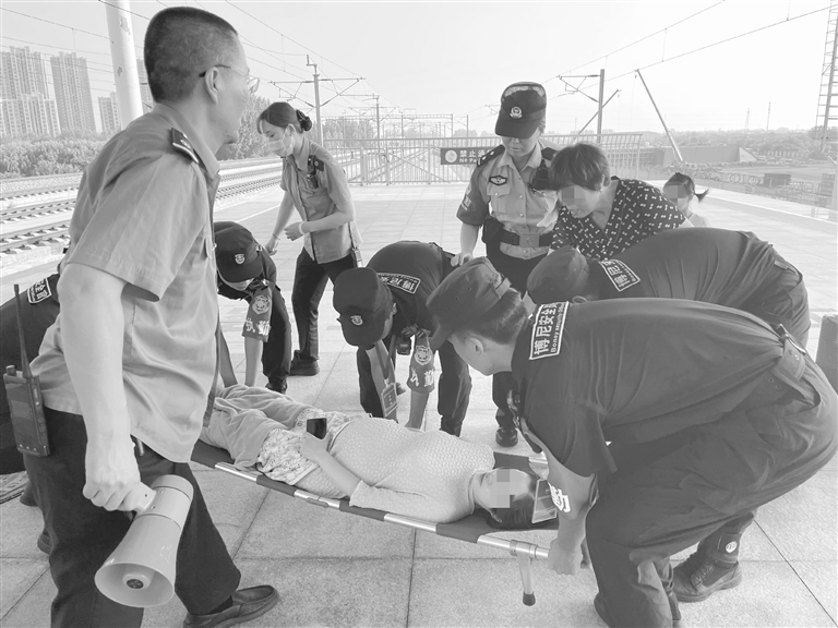 一名孕妇旅客因即将生产,紧急在保定东站中途下车接受救治。