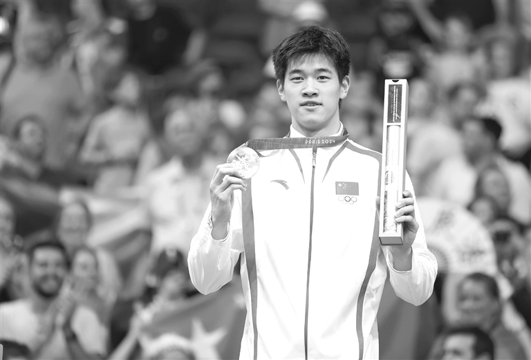 ▲7月31日,中国选手潘展乐在颁奖仪式上。新华社发