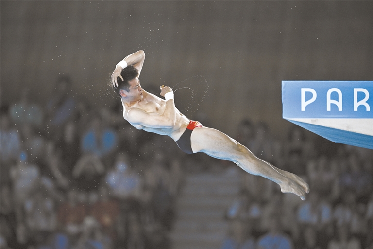 8月10日,曹缘在比赛中。当日,在巴黎奥运会跳水项目男子10米跳台决赛中,中国选手曹缘夺得冠军。 新华社发