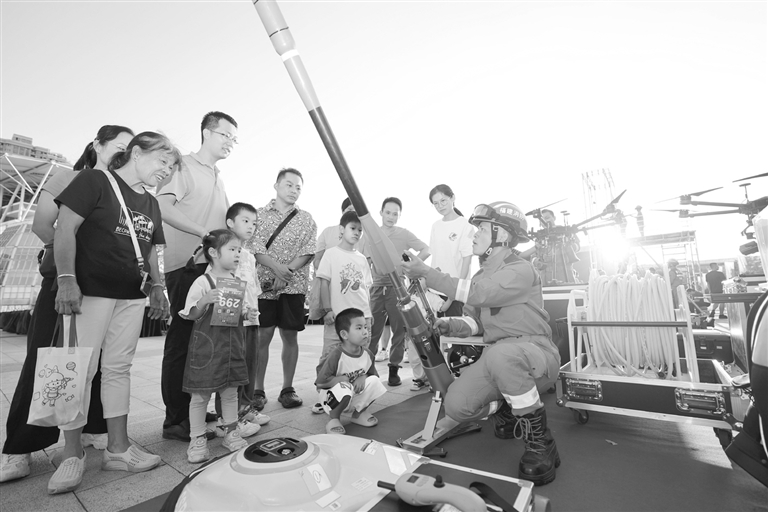 11月2日,2024年福建省厦门市“119”消防宣传月启动仪式在厦门五一广场举行,活动主题为“全民消防、生命至上”。活动现场通过开展灭火救援演练、消防装备体验、消防知识问答、消防趣味游戏互动等,提高人们的消防安全意识和自防自救能力。