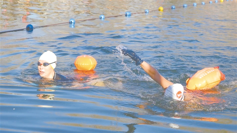 冬泳爱好者在易县易水河内畅游。 张仕儒 摄