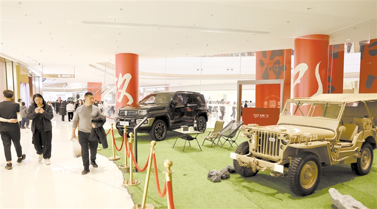 爱情广场汽车展示区,吸引着往来顾客驻足打量。 保定日报记者 王田明 摄