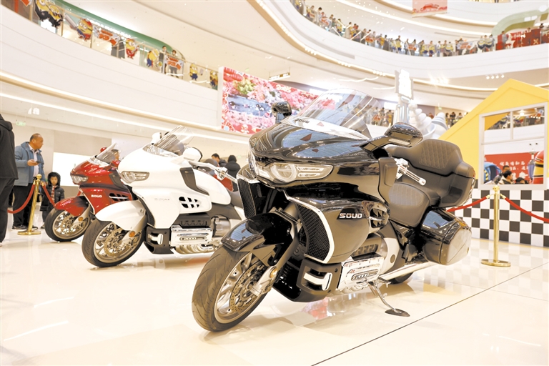 在爱情广场展示的长城灵魂摩托车,尽显机械美学。 保定日报记者 王田明 摄