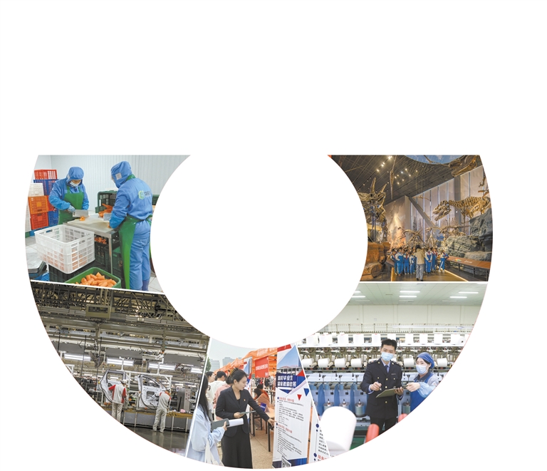 ① 净菜手工加工。 保定日报记者 王 菊 摄 ② 长城汽车生产线。 保定日报记者 罗大庆 摄 ③ 市人社局组织招聘会,工作人员为毕业生讲解留保激励政策。 受访单位供图