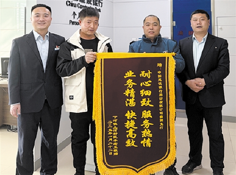 建行保定曲阳支行日前收到客户送来的一面印有“耐心细致 服务热情 业务精湛 快捷高效”的锦旗,对支行及客户部经理的高效服务表示感谢。