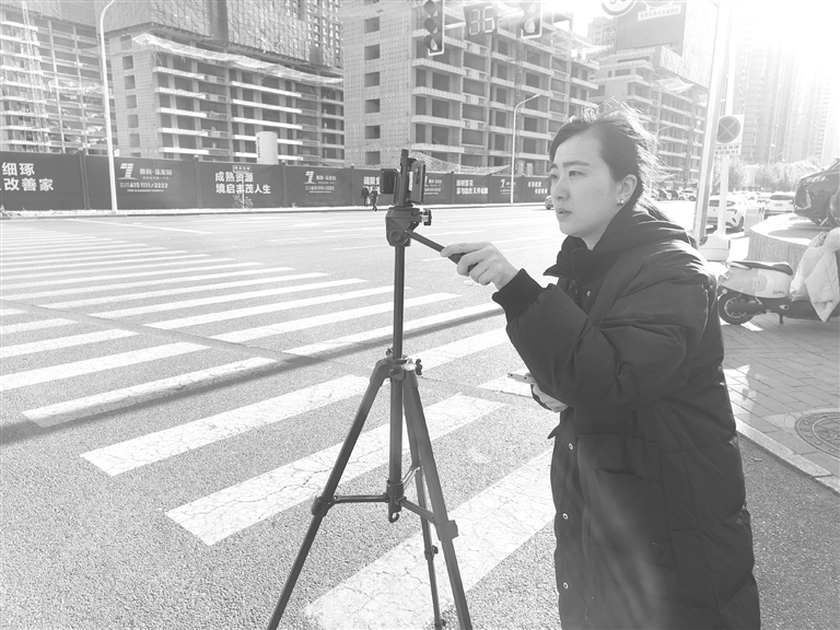 保定交通广播记者在直播现场。 高铭 摄