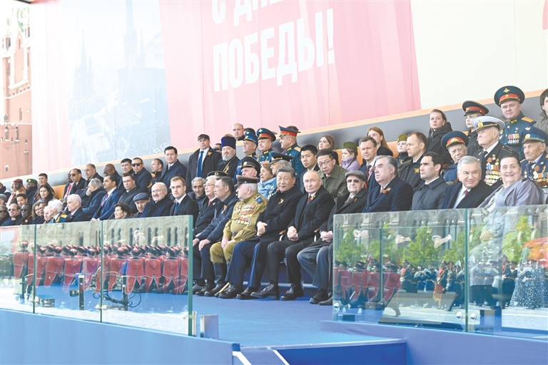当地时间5月9日,俄罗斯举行盛大庆典,纪念苏联伟大卫国战争胜利80周年。国家主席习近平和来自世界20多个国家及国际组织领导人应邀出席庆典。 新华社记者 谢环驰 摄