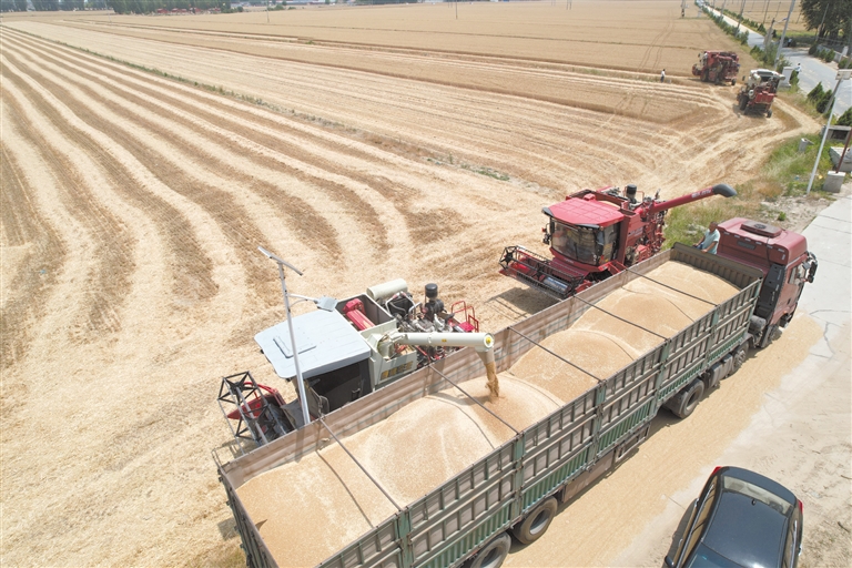 望都县29.65万亩小麦开镰抢收。 栗志安 王涛 摄
