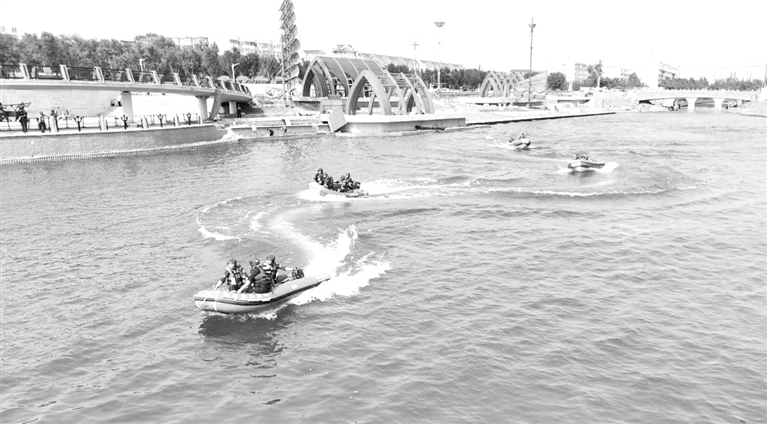 环城水系水域综合救援演练现场。 刘鹭 摄