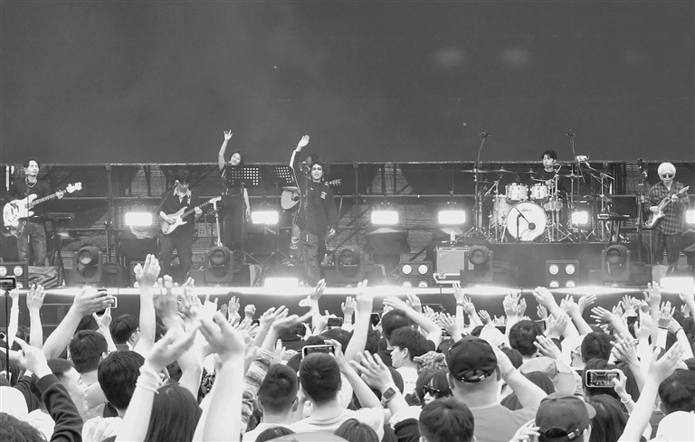 音乐节现场,脆莓乐队奏唱摇滚乐。 侯虓 摄