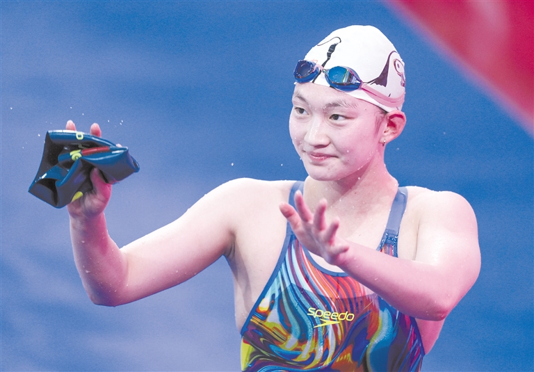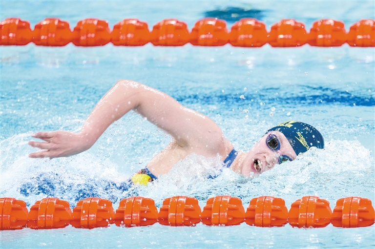 11月12日,第十五届全国运动会游泳女子1500米自由泳决赛在广东省深圳市举行。河北队选手、保定籍运动员李冰洁以15分55秒40的成绩获得冠军,实现该项目三连冠。这也是本届全运会李冰洁获得的第二枚金牌。 新华社记者 杜宇 摄