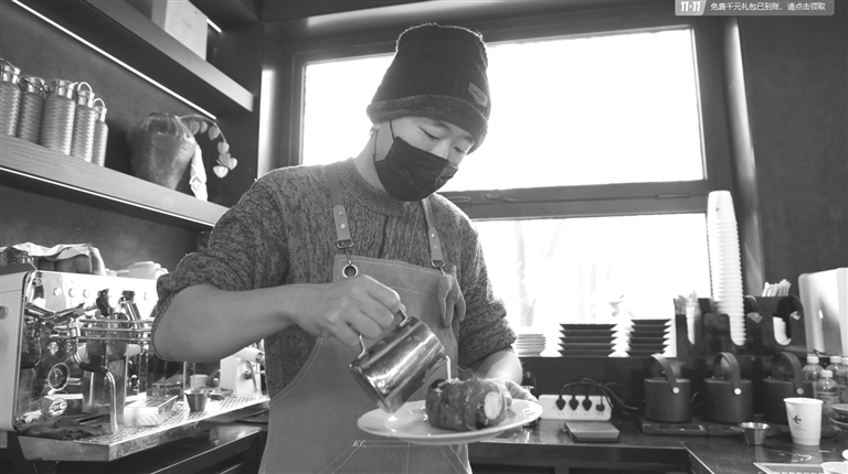 慢慢山茶咖内,咖啡师娴熟调制烤红薯拿铁。 张仕儒 摄