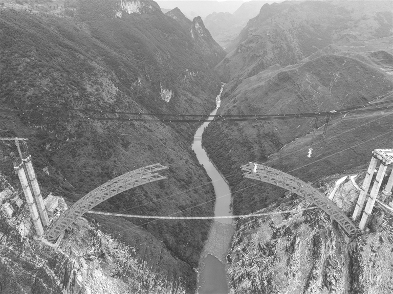 目前,由贵州桥梁集团承建的安顺至盘州高速公路古牛河特大桥项目建设进展顺利,大桥主拱圈预计于今年底合龙。古牛河特大桥是贵州安盘高速控制性工程,全长881.8米,主桥横跨古牛河,主桥桥面到谷底高度约400米。