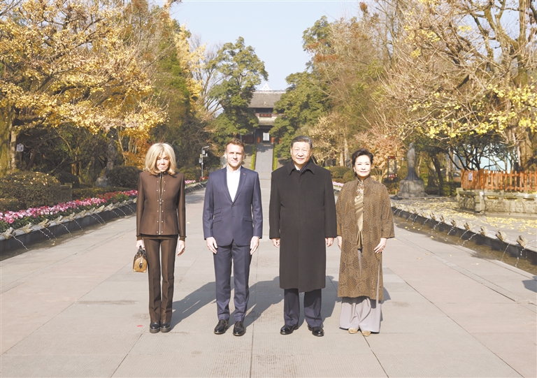 习近平夫妇邀请马克龙夫妇共进午餐,继续深入交流。