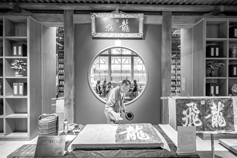 保定宴博物馆内游客体验拓印。 罗大庆 摄