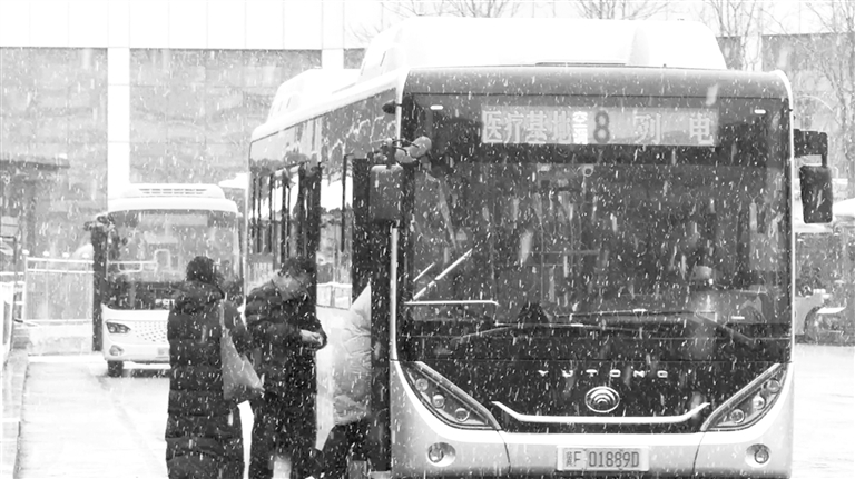 ▲公交公司根据雪情和客流动态及时调整增加运营班次。 刘雲龙 摄