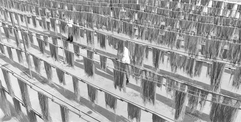 1月5日,高阳县贾家务村聚兴土地专业合作社内,一排排晶莹剔透的粉条高高挂起,宛如丝帘。该村采用“党支部+合作社+农户”模式,通过“统一种薯、标准化制粉、统一销售”的链条化运营,粉条年产量达十万余斤,传承百年手工粉条技艺的同时,增加村民收入。