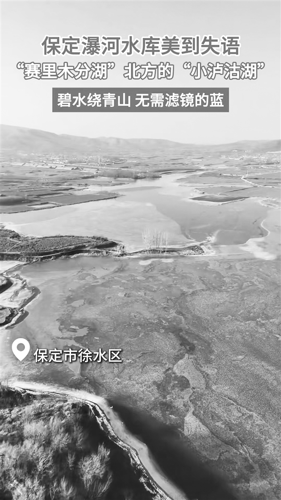 保定徐水区瀑河水库,无需滤镜的蓝,阳光洒落时,冰层折射出碎金般的光芒,与碧水绕青山的景致相融,分不清是天映湖,还是湖接天。在这里,城市的喧嚣被寒雾隔绝,只剩风声、鸟啼与心的悸动,唯有亲至,方能懂这份美好——是冰封的澄澈,是蓝调的治愈,是北方冬日独有的诗意与浪漫。