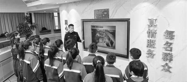 警营开放日,县学街小学师生代表走进保定市公安局110接处警大厅。 门煜 摄