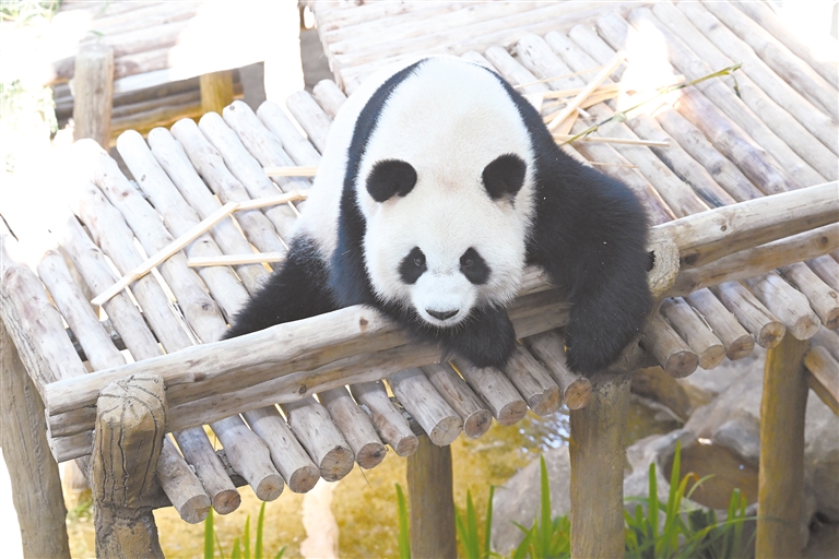 这是1月10日在马来西亚吉隆坡附近的马来西亚国家动物园拍摄的大熊猫“晓月”。大熊猫“辰星”“晓月”10日在马来西亚国家动物园大熊猫保护中心正式与马来西亚公众见面。两只憨态可掬的大熊猫吸引众多民众前来参观,现场气氛热烈。 新华社发