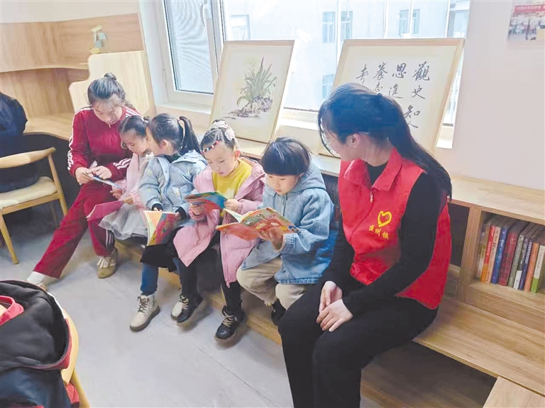 曲阳县文昌社区志愿者在四点半课堂指导社区儿童读书。 刘康 摄