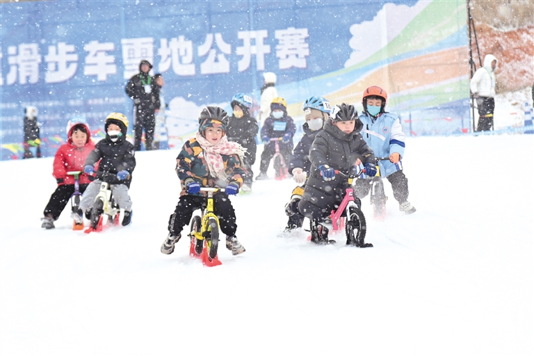 本报讯(新畿辅-保定日报记者郝子帅)1月17日下午,涞源七山滑雪场迎来一群朝气蓬勃的“小骑手”。2026京津冀儿童滑步车雪地公开赛火热开赛,这也是该项赛事首度从平地“跨界”进入冰雪赛道。近200名“全副武装”的小选手们脚踏滑步车、头戴护具,在专属雪道上竞逐,成为雪场最吸睛的一道风景。