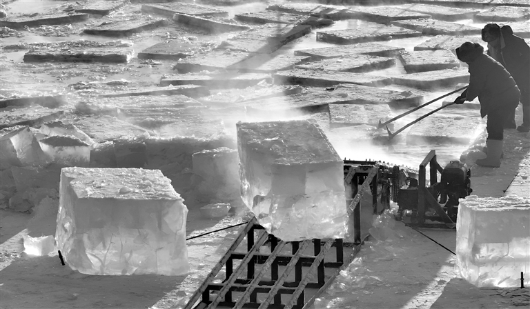 寒冬时节,第二十七届哈尔滨冰雪大世界正值迎客旺季。在距园区不远处的松花江哈尔滨段江面上,存冰开采工作已全面开启。哈尔滨冰雪大世界每年都会在采冰季挑选出一批冰块储存,采用传统储冰与现代多层保温技术相结合的方式,让冰块储存近一年时间不融化,供下一届冰雪大世界建设时使用。