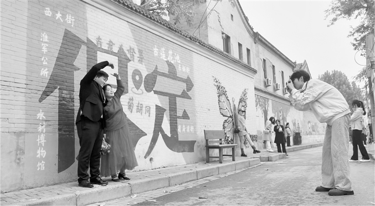 市民打卡菊胡同。 新畿辅-保定日报记者 刘飞 摄