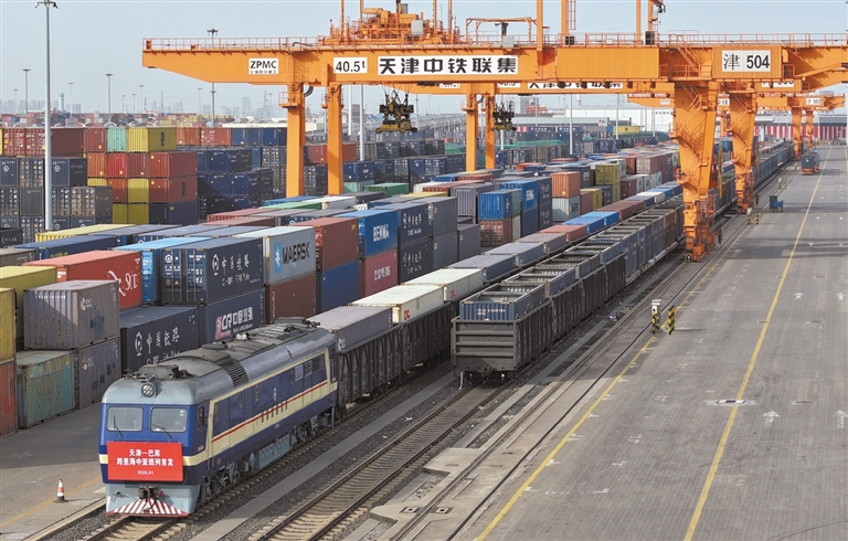 1月19日,一列满载不锈钢管材、家电等货物的中亚班列从中国铁路北京局集团有限公司所属的天津集装箱中心站驶出,将经由霍尔果斯口岸出境至哈萨克斯坦阿克套港,最终经里海海运至阿塞拜疆巴库。