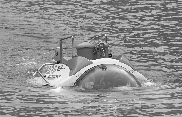 近日,由重庆巫山本土科技企业坤联机械制造有限公司自主研发制造的“鲛子”号水下载人观光潜水器在双龙湖进行交付前的测试。