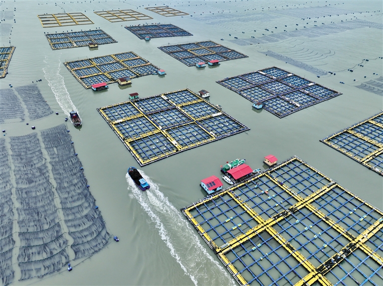 冬季,福建省宁德市海上养殖区一派繁忙景象。船只穿梭于海上田园,渔民在渔排上精心喂养鲍鱼、海参、大黄鱼等。近年来,宁德市通过加强海上管理,优化养殖模式,提升科技应用等措施,促进海洋养殖产业高质量发展,为乡村振兴注入新动能。