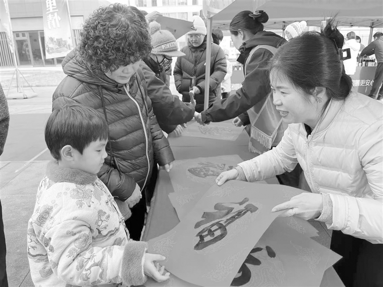 工作人员给居民送手写福字。 新畿辅-保定日报记者 丁梦圆 摄