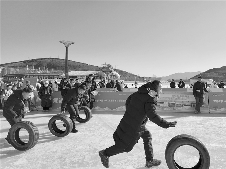 冰上推轮胎。新畿辅-保定日报记者 王艳娇 摄
