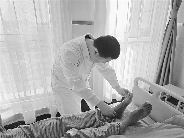 术后,赵磊医生为患者检查患处。 葛川 摄