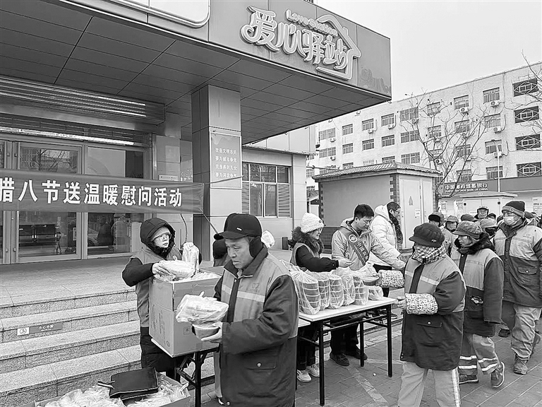 1月26日,农行定州市支行在爱心驿站开展送温暖活动,将热乎的腊八粥送到环卫工人等户外劳动者手中,让其感受到冬日的关怀,当天累计送出腊八粥400余份。