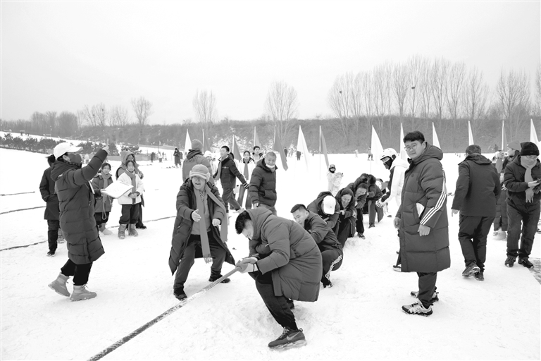 此次赛事设置雪地拔河、越野滑雪、单板滑雪、双板滑雪四个项目,分设学生组与教职工组,低门槛、高趣味的赛事设计让不同群体都能参与其中。雪地拔河现场,师生们凝心聚力、呐喊助威,麻绳两端的队员们铆足劲相持,赛场边加油声此起彼伏;滑雪赛道上,选手们或平稳滑行、或灵活转弯,在皑皑白雪中穿梭竞技,展现出昂扬的运动风采。参赛选手们全力以赴,观赛人员热情鼓劲,雪场之上,动感与活力交织,欢笑与呐喊相融,处处洋溢着全民健身的热烈氛围。