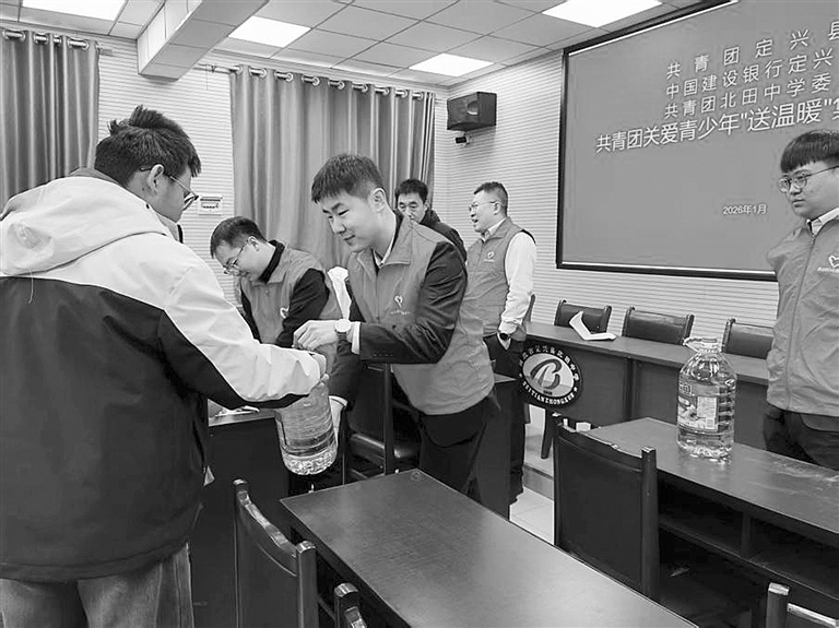共青团定兴县委日前携手建行保定定兴支行团支部开展关爱青少年“送温暖”活动,为北田中学10名困难学生送上慰问品,并与其亲切交流,细致询问学习生活状况,鼓励他们树立远大理想、保持乐观心态,勤学奋进,用知识改变命运,努力成长为对社会有用的人。