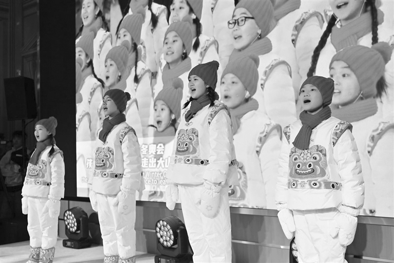 “中国之夜·五环之光”活动中,马兰花儿童声合唱团再次唱响奥林匹克会歌。 受访者供图