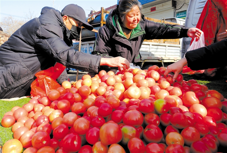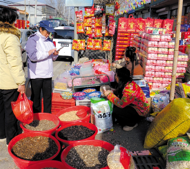 2月12日是顺平县河口乡的大集。一大早,76岁的吴大娘坐着家里的三轮车来到集市上置办年货,等着过两天在城里上班的孩子们回家,高高兴兴过一个团圆年。
