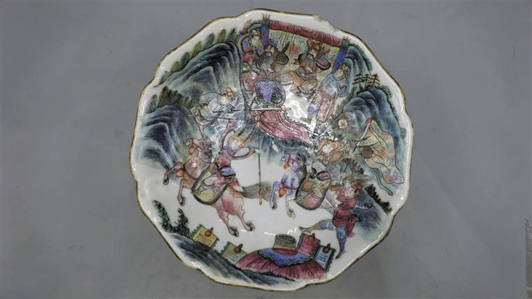 从汉代的力量之美,走到清代的精致生活,马文化也在工艺美术中绽放新彩。保定市博物馆收藏的清代同治粉彩戏剧人物故事花口盘,便是“以瓷绘马、以画传情”的典范之作,让马从战场畜力,变为艺术与生活中的诗意符号。