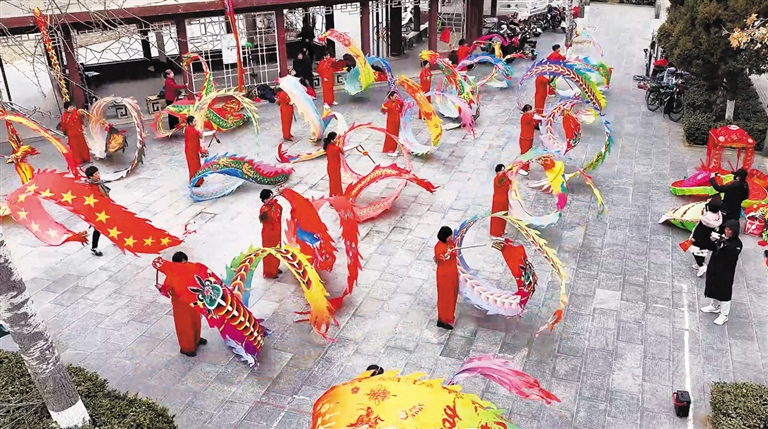 ①保定梦幻舞龙艺术团在滨河公园开展迎新春舞龙表演。 冯利军 摄