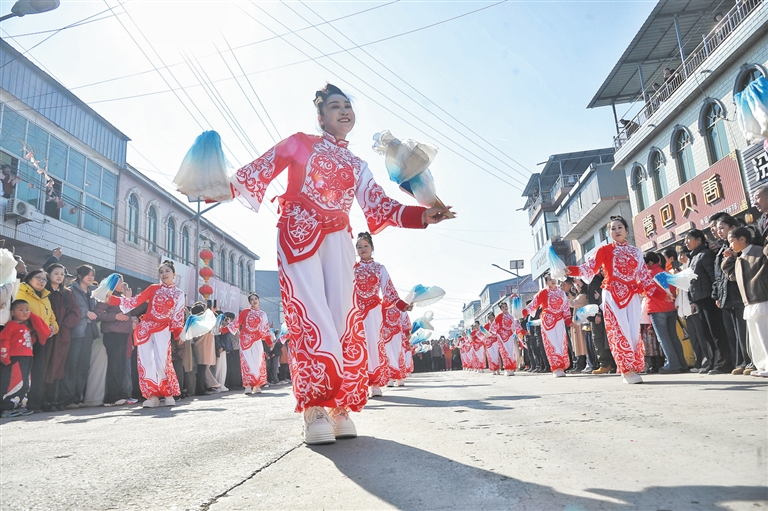 ②曲阳县灵山村的秧歌表演热闹喜庆。 王增光 摄 ③定兴新春百姓市集上,市民沉浸式感受传统文化魅力。 张曾良 摄