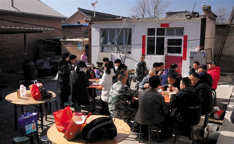 ▲演出前7小时,剧团在村民家的院中开饭了。