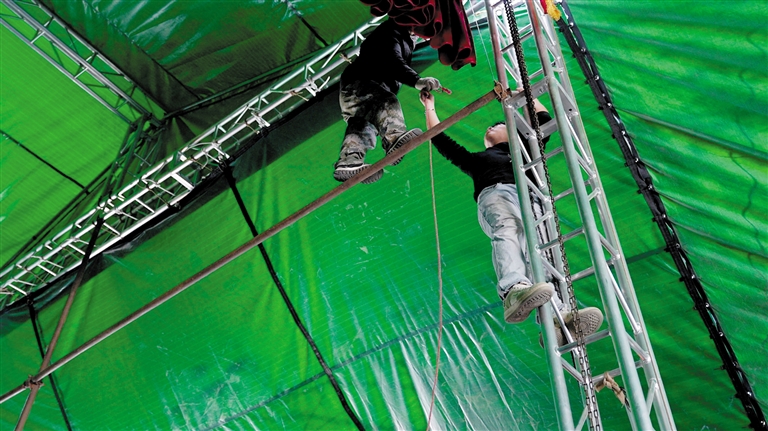 ▲演出前4小时,演职人员搭建舞台。