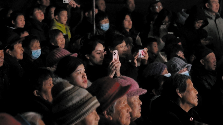 晚7时,锣鼓点一响,台上台下的人们,眼神变得无比专注,目光交织,便织成了一张温暖的网,网住乡音,醉了归人,也唤醒了山村新春。