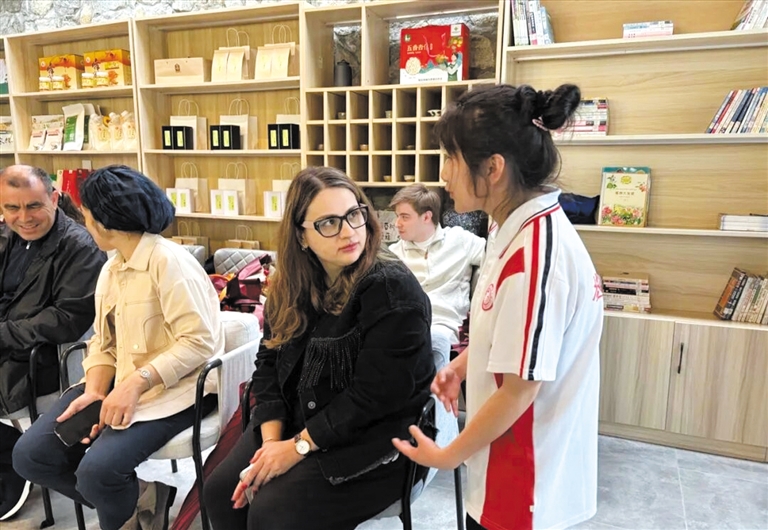 易水高级中学国际班学生与塔什干国立经济大学学生用英语无障碍交流。(资料片) 受访单位供图