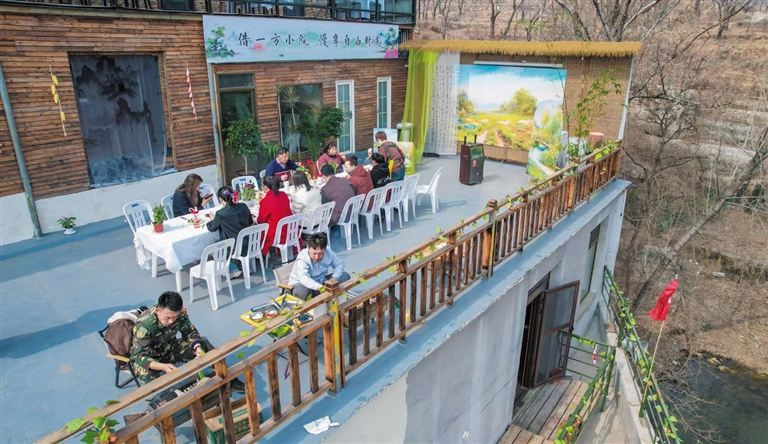 “借个院子”提供的远不止食宿。李雪说,这里有专业K歌设备、能容40多人的餐厅、户外拓展基地,但最特别的体验还是冬天去看瀑布,很多客人专程来拍照打卡,就为听听瀑布的声音,天气冷的时候还能看到冰瀑。