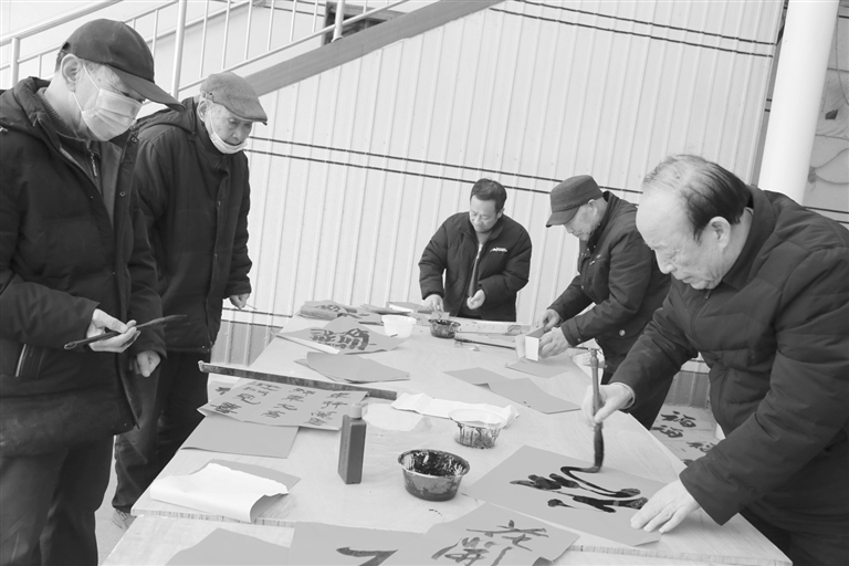 活动现场墨香萦绕、暖意融融,书法老师们铺纸研墨、笔走龙蛇,一副副寓意吉祥的春联和圆润饱满的福字新鲜出炉,楷书端庄、行书飘逸、隶书古朴,承载着新春美好期许。村民们扶老携幼齐聚现场,或排队等候、或驻足欣赏,拿到墨迹未干的春联福字,脸上满是幸福笑容。“手写的春联最有年味儿,福气送到家门口,心里特别暖。”东南街村党支部书记齐建平感慨道。