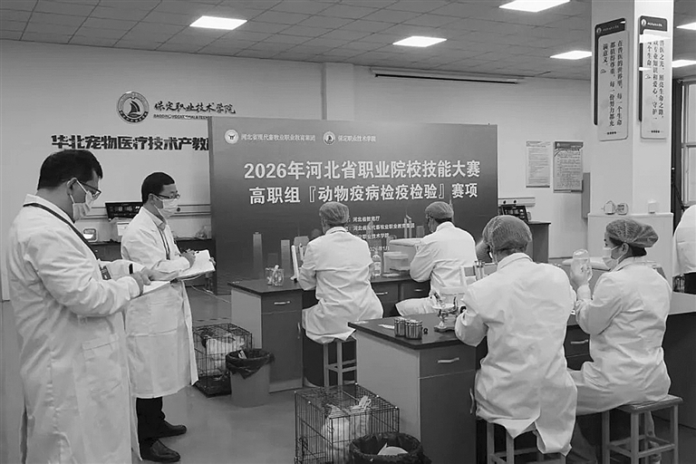 本报讯(新畿辅-保定日报记者孙鹏)日前,2026年河北省职业院校技能大赛高职组动物疫病检疫检验赛项成功举办。经过激烈比拼,保定职业技术学院畜牧兽医系教师翟文栋、孔春梅指导的孟雨、崔源媛、王以飒组成的参赛队获团体第一名,充分彰显了该学院在畜牧兽医专业人才培养方面的扎实功底与突出成效。