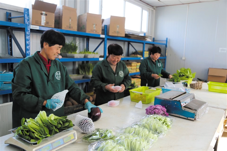 2月24日,农历正月初八,春节后的首个工作日。清晨的寒意未消,定兴县贤寓镇溯朴农庄的日光暖棚里,已是一派繁忙:工人们挎着菜篮,穿梭在青翠的菜垄间,按照北京客户订单,抓紧采摘新鲜有机蔬菜。